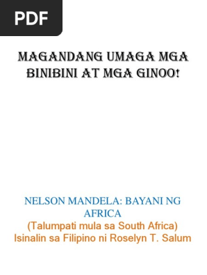 Gr 10 Nelson Mandela Sanaysay Bayani Ng Africa Pdf